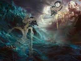 Dengan suka cita ia lama memandang laut dan keindahan isi laut, kesedihan sudah terkikis, menerawang tanpa batas, lalu ia memusatkan perhatian tanpa memikirkan marabahaya, dengan semangat yang menyala-nyala mencebur ke laut, tampak kegembiraannya, dan tak lupa digunakannya ilmu Jalasengara, agar air menyibak.